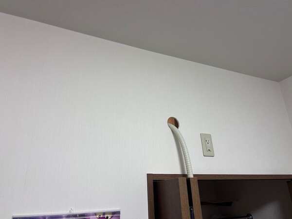 クローゼットの点検口からドレンを通す所をトイレと睨めっこしながら決めて、トイレ側に穴開けてドレン通しました。