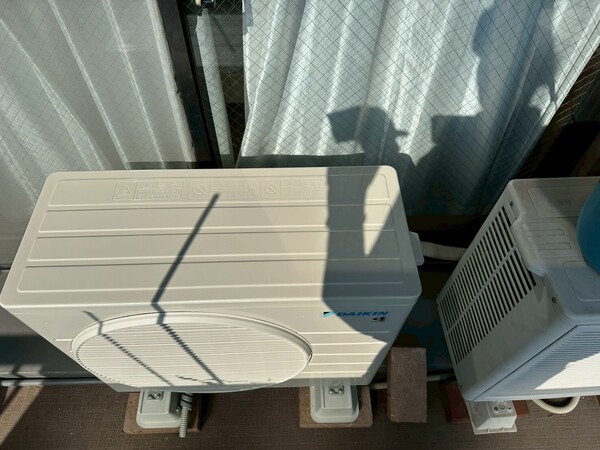 室外機ラックは設置出来ないので平置きです。