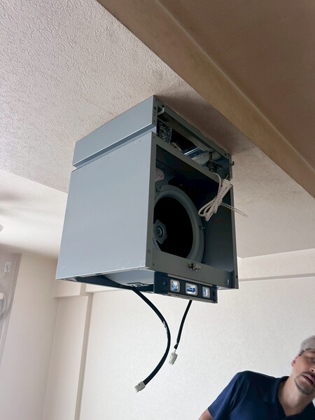 本体かけてダクト接続してアース工事。