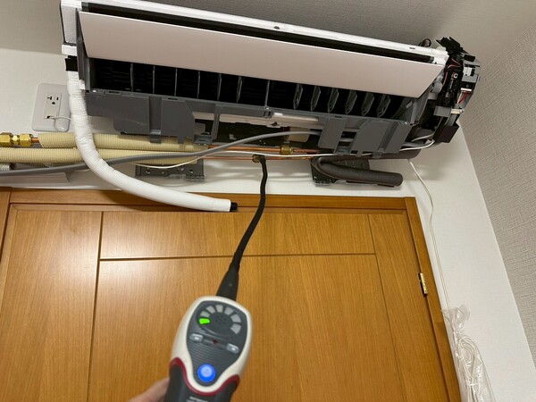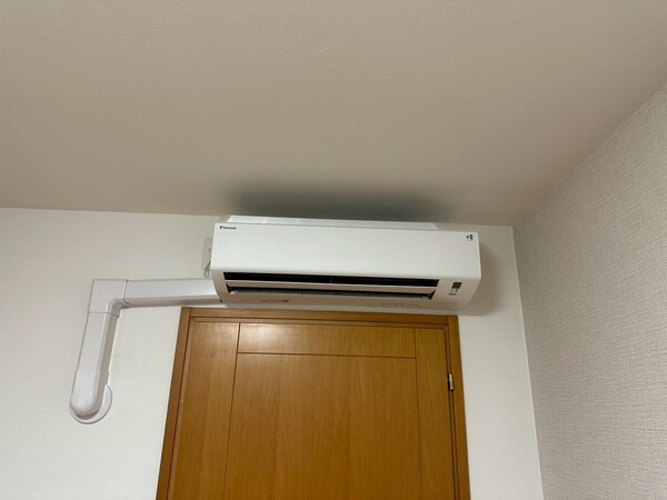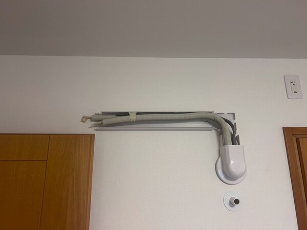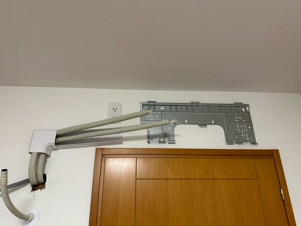室内機はお客様と相談してコンセント右側に取り付ける事にしました。