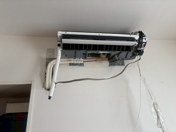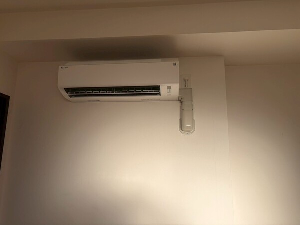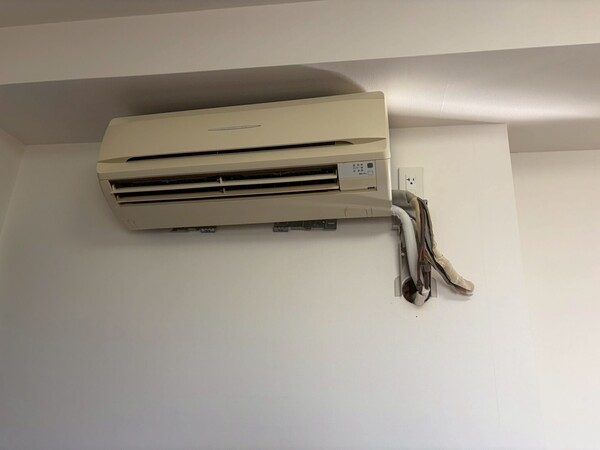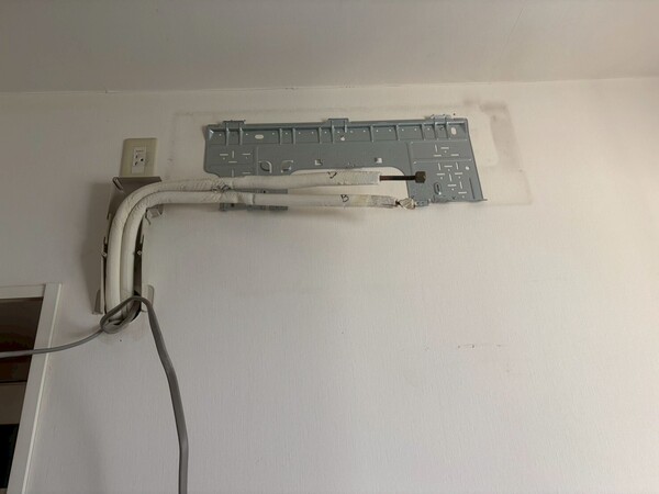 洋室のコンセントから室外機に200vの電源線が渡っているので100vにブレーカーとコンセントを変換します。