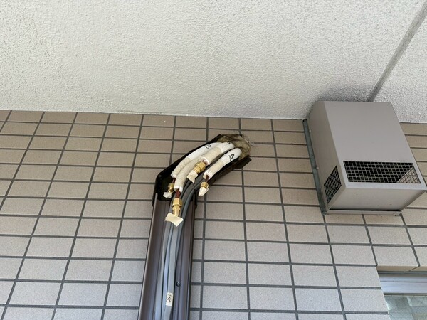 外カバーはお客様と相談して上の室外機裏まで切り詰めました。