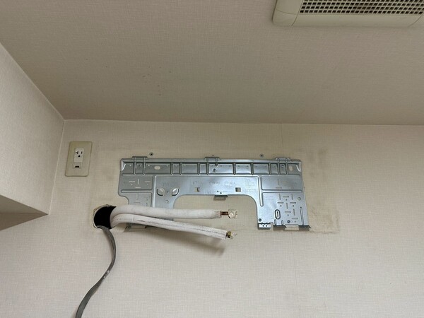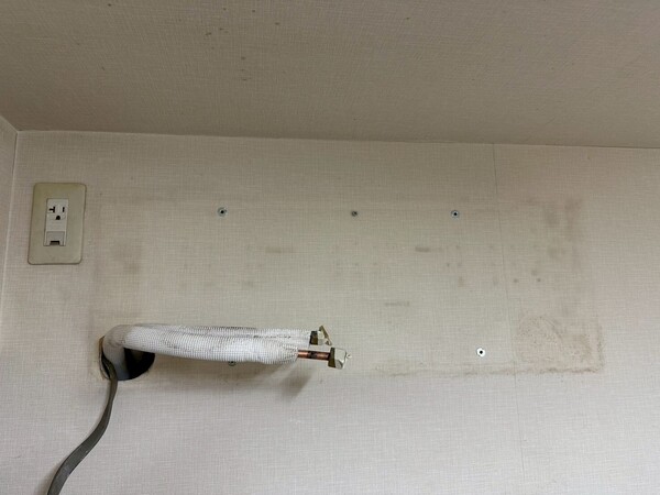 冷媒管は壁中に余裕を持って配管されてるので引き出してフレア切り直しました。